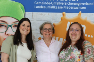 Geschäftsführerin Kristina Bohm im Gespräch mit den Prüfungsabsolventinnen - Bilder ©GUVH v. l. n. r. Verena Fritz, Kyra Hellwig, Kristina Bohm