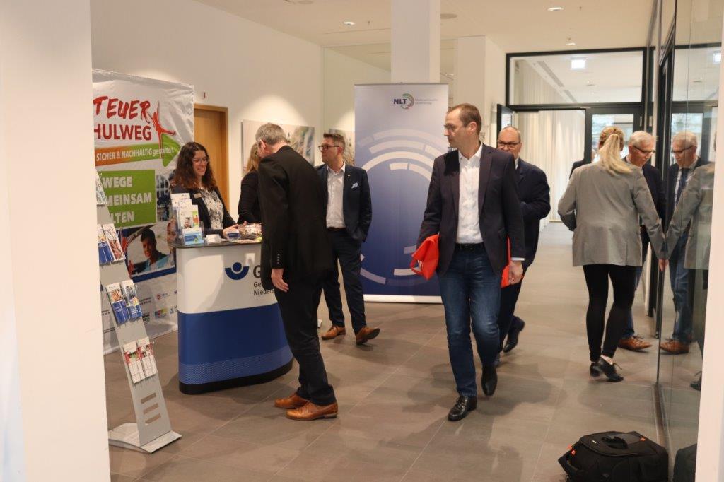 Mit einem vielfältigen Informationsangebot präsentierten sich die öffentlichen Träger der gesetzlichen Unfallversicherung in Niedersachsen am 13.03.2026 auf der Mitgliederversammlung des Niedersächsischen Landkreistages in Leer. Landrätinnen und Landräte konnten sich an dem Infostand GUV/UK über das Seminarangebot des GUVH und der LUKN für Verwaltungen , das Projekt des GUVH / der LUKN "Ihr Weg zum Deeskalationsmanagement" sowie über das Onlinetool des GUVH und der LUKN zur Gefährdungsbeurteilung Psychische Belastungen“ informieren.