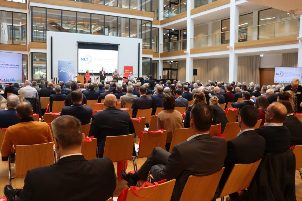 Bild links und rechts ©GUVH: Mitgliederversammlung des Niedersächsischen Landkreistages im Sparkassenforum der Stadt Leer