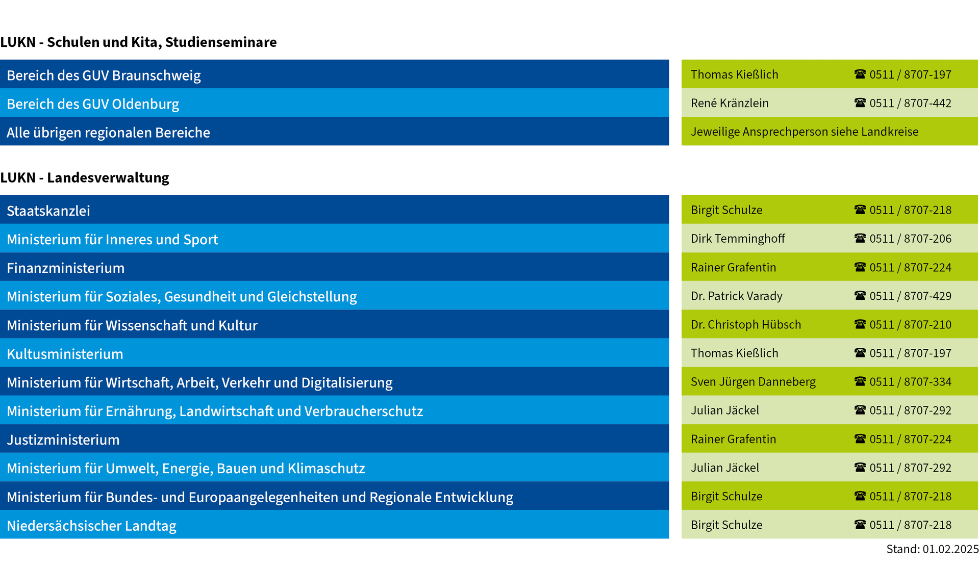 Prävention > Ansprechpersonen Präventionsfragen > Aufsichtspersonen und Zuständigkeiten - Landesverwaltung
