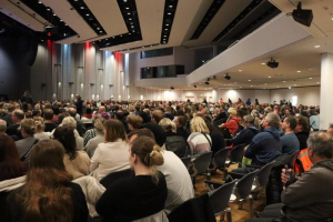 Bild links: Gesamtpersonalversammlung der Stadt Osnabrück - Bild rechts: Informations- und Beratungsangebot des GUVH für die Stadt Osnabrück und ihre Beschäftigten.