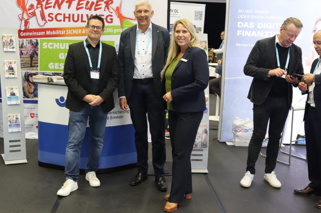 Bild li. ©GUV Hannover -Besuch des stellvertretenden Präsidiumsmitglieds des Niedersächsischen Städtetages Torsten Rohde, Bürgermeister der Stadt Osterholz Scharmbeck (Bildmitte). Bild re. ©GUV Hannover - Infostand der öffentlichen Unfallversicherungsträger