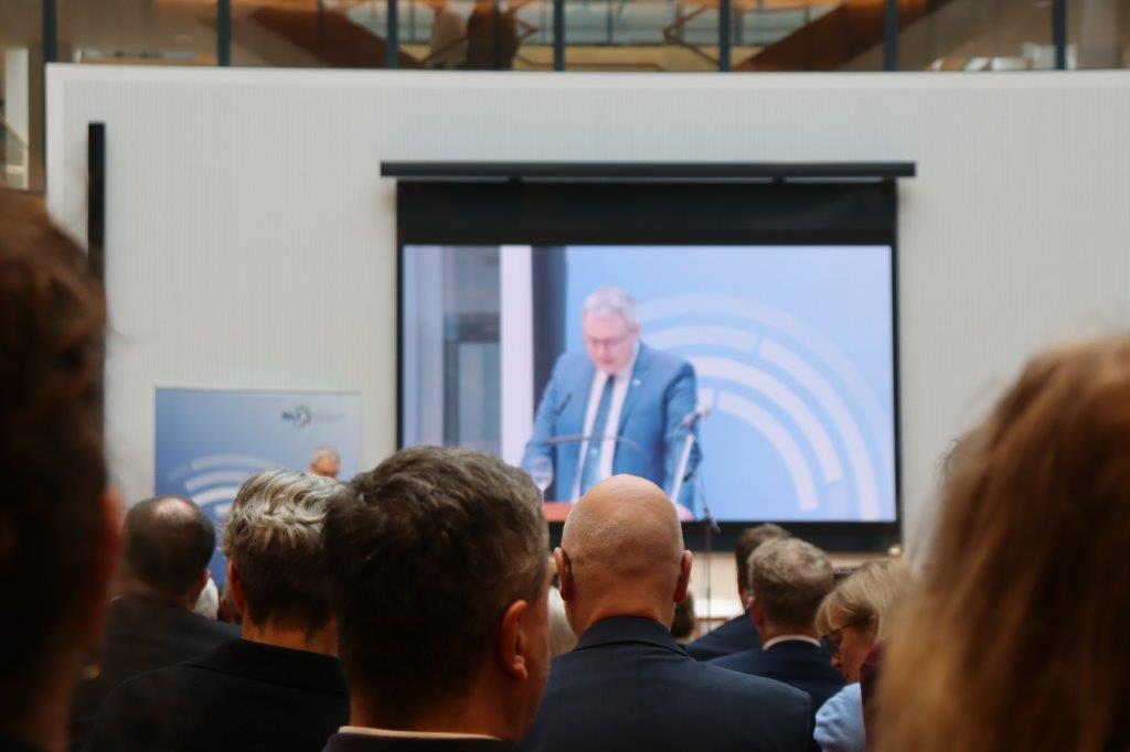 Bild links ©GUVH: Begüßung durch den Präsidenten des NLT und stellvertretendes Mitglied der Arbeitgebervertreter der Vertreterversammlung des GUVH - Landrat Marco Prietz